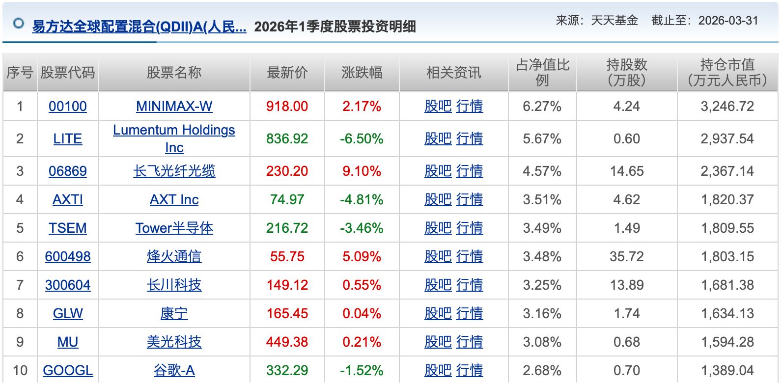 易方达全球配置:拥抱AI产业链 Minimax成第一大重仓股