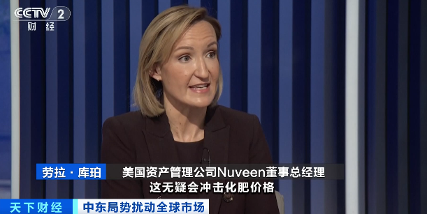 美国资产管理公司Nuveen董事总经理劳拉·库珀:这场冲突持续时间越长,影响就越大,这无疑会冲击化肥价格,也会波及那些对整个供应链来说至关重要的关键大宗商品,而这带来的连锁反应就是,我们可能会看到食品价格显著上升。