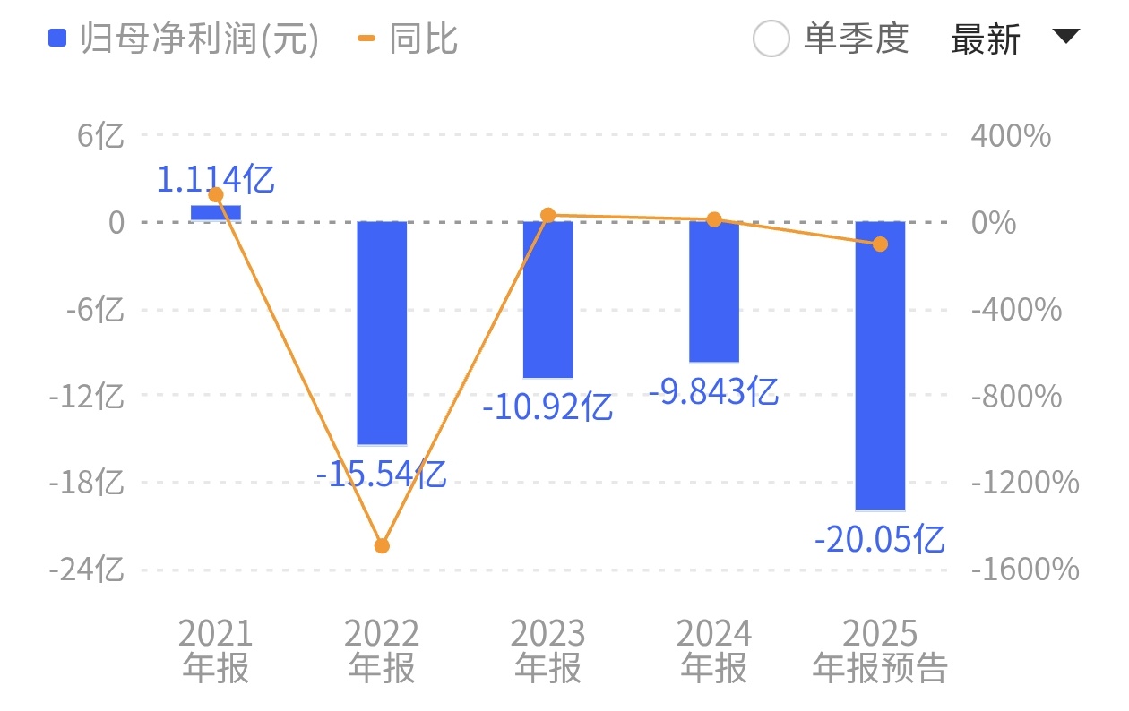 同时,公司预计2025年末归属于母公司所有者权益为-9.4亿元至-14亿元,在资不抵债的同时,已触及扣除后营业收入低于3亿元且期末净资产为负值的双重退市红线。