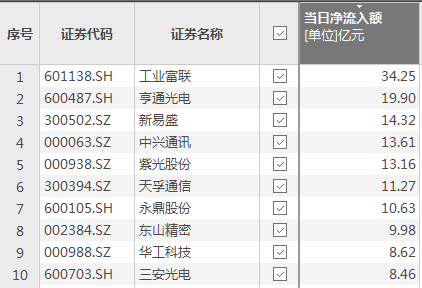 资金风向标 | 工业富联获资金净流入34.25亿元
