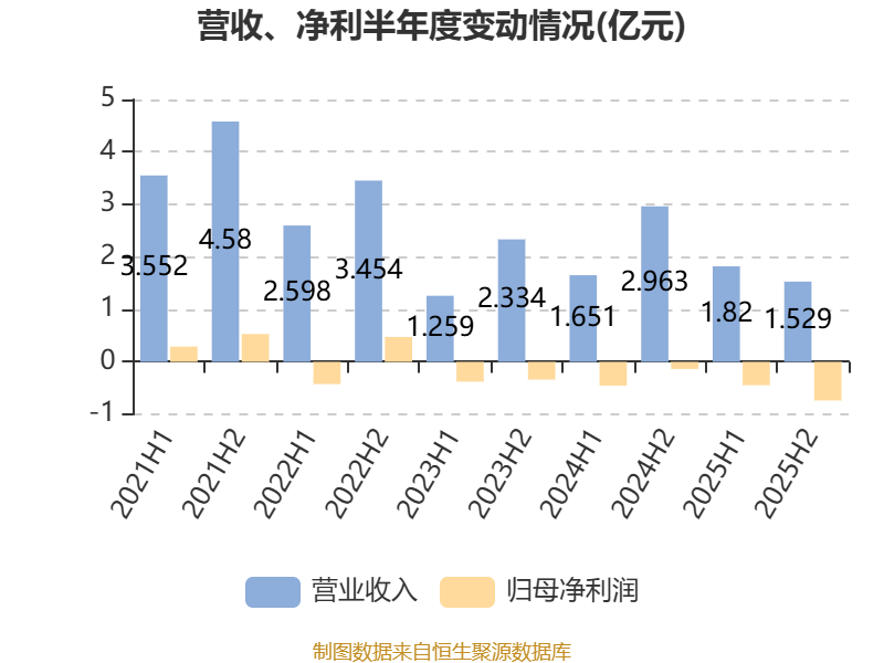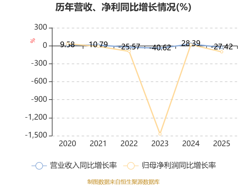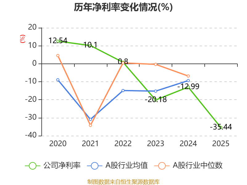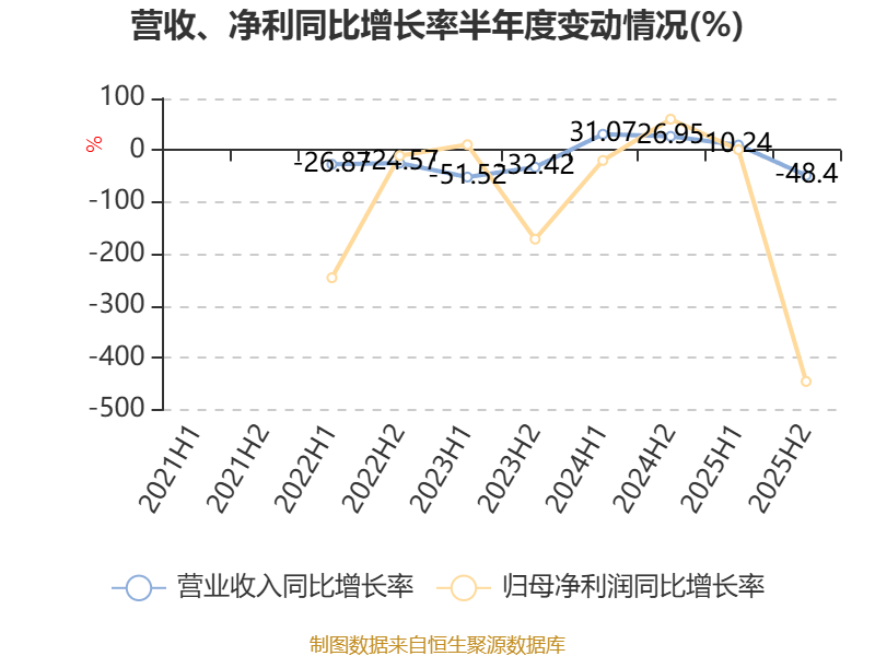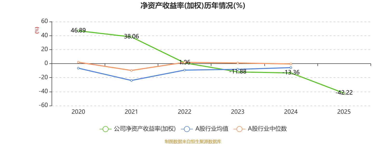 数据显示,2025年公司平均净资产收益率为-42.22%,较上年同期下降28.86个百分点。