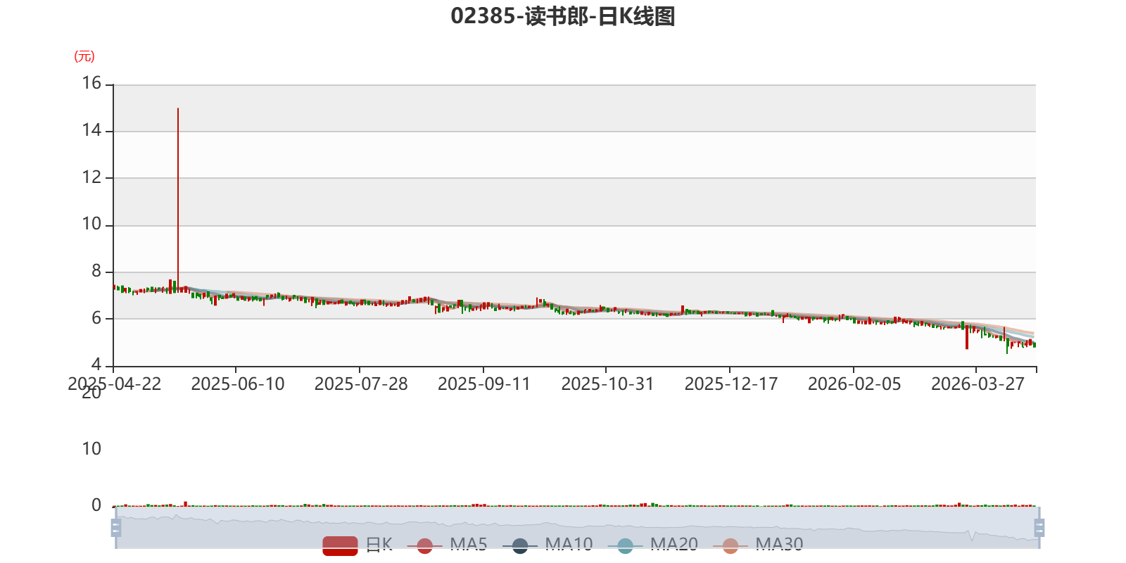 中证智能财讯读书郎(02385)4月22日披露2025年度报告。报告期内,公司实现营业收入3.35亿元,同比下降27.42%;归母净利润亏损1.18亿元,上年同期亏损5857.9万元;经营活动产生的现金流量净额为-6492.4万元,上年同期为882.4万元;据报告显示,读书郎基本每股收益为-0.366元,平均净资产收益率为-42.22%。