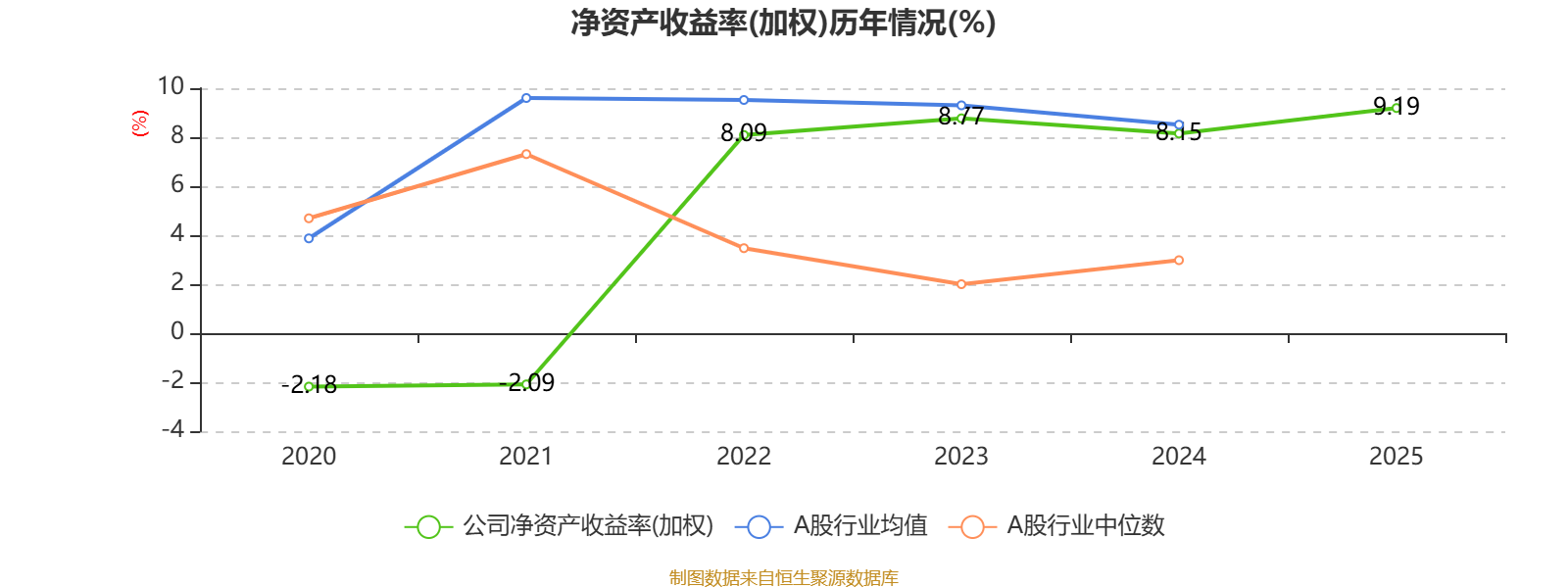 数据显示,2025年公司平均净资产收益率为9.19%,较上年同期上升1.04个百分点。