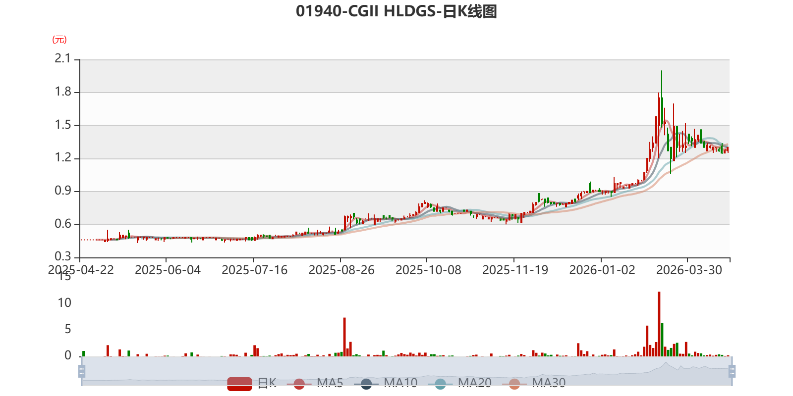 中证智能财讯 CGII HLDGS(01940)4月22日披露2025年度报告。报告期内,公司实现营业收入15.29亿元,同比增长16.41%;归母净利润1.56亿元,同比增长20.16%;据报告显示,CGII HLDGS基本每股收益为0.13元,平均净资产收益率为9.19%。