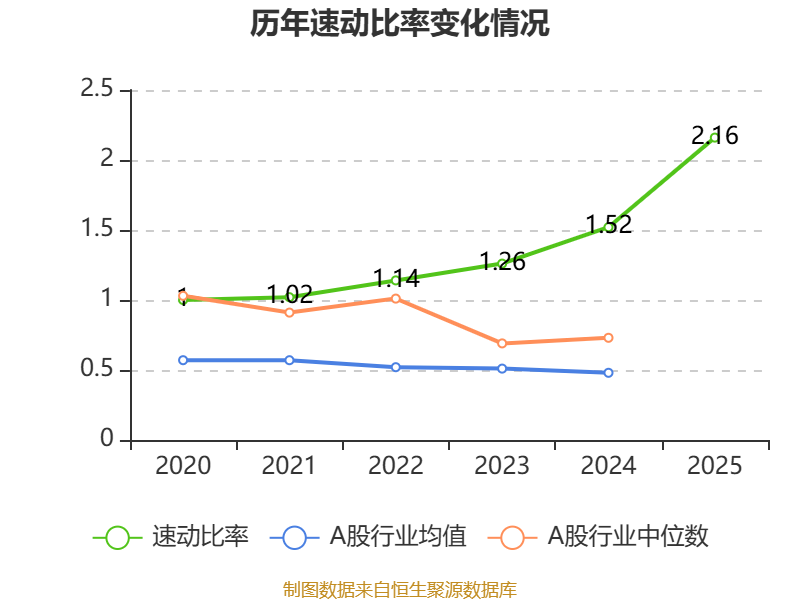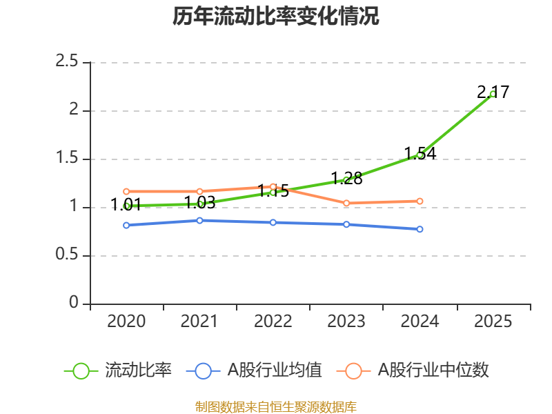 2025年,公司流动比率为2.17,速动比率为2.16。