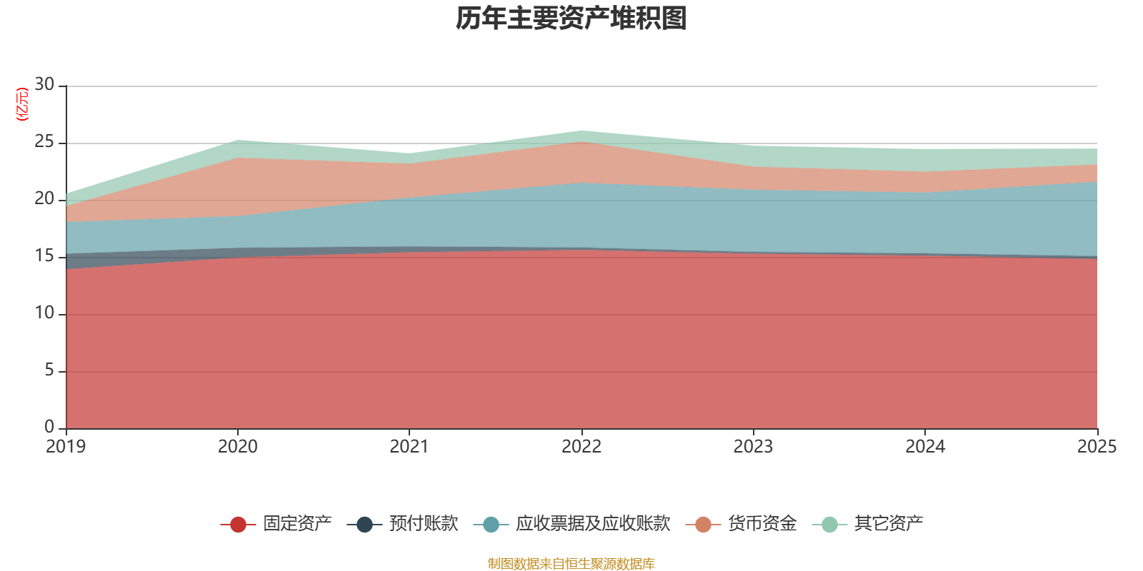 资产重大变化方面,截至2025年末,公司应收票据及应收账款较上期末增加22.13%,占公司总资产比重上升4.77个百分点;其他非流动资产较上期末减少99.4%,占公司总资产比重下降1.95个百分点;货币资金较上期末减少18.41%,占公司总资产比重下降1.4个百分点;固定资产较上期末减少1.93%,占公司总资产比重下降1.31个百分点。