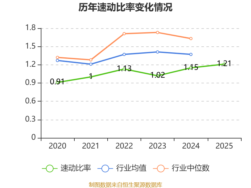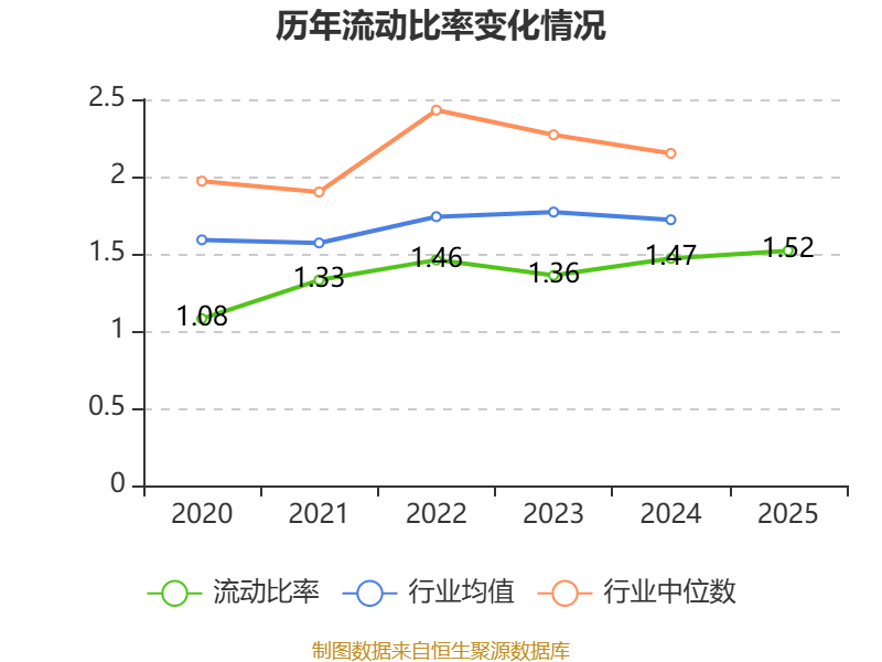 2025年,公司流动比率为1.52,速动比率为1.21。