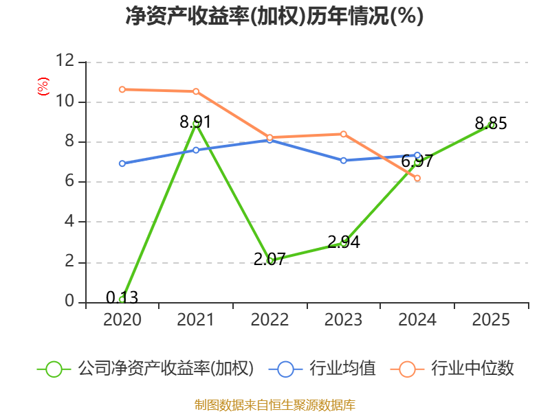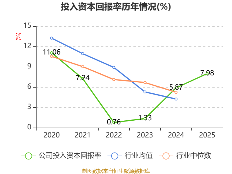 数据显示,2025年公司加权平均净资产收益率为8.85%,较上年同期上升1.88个百分点。公司2025年投入资本回报率为7.98%,较上年同期上升2.11个百分点。