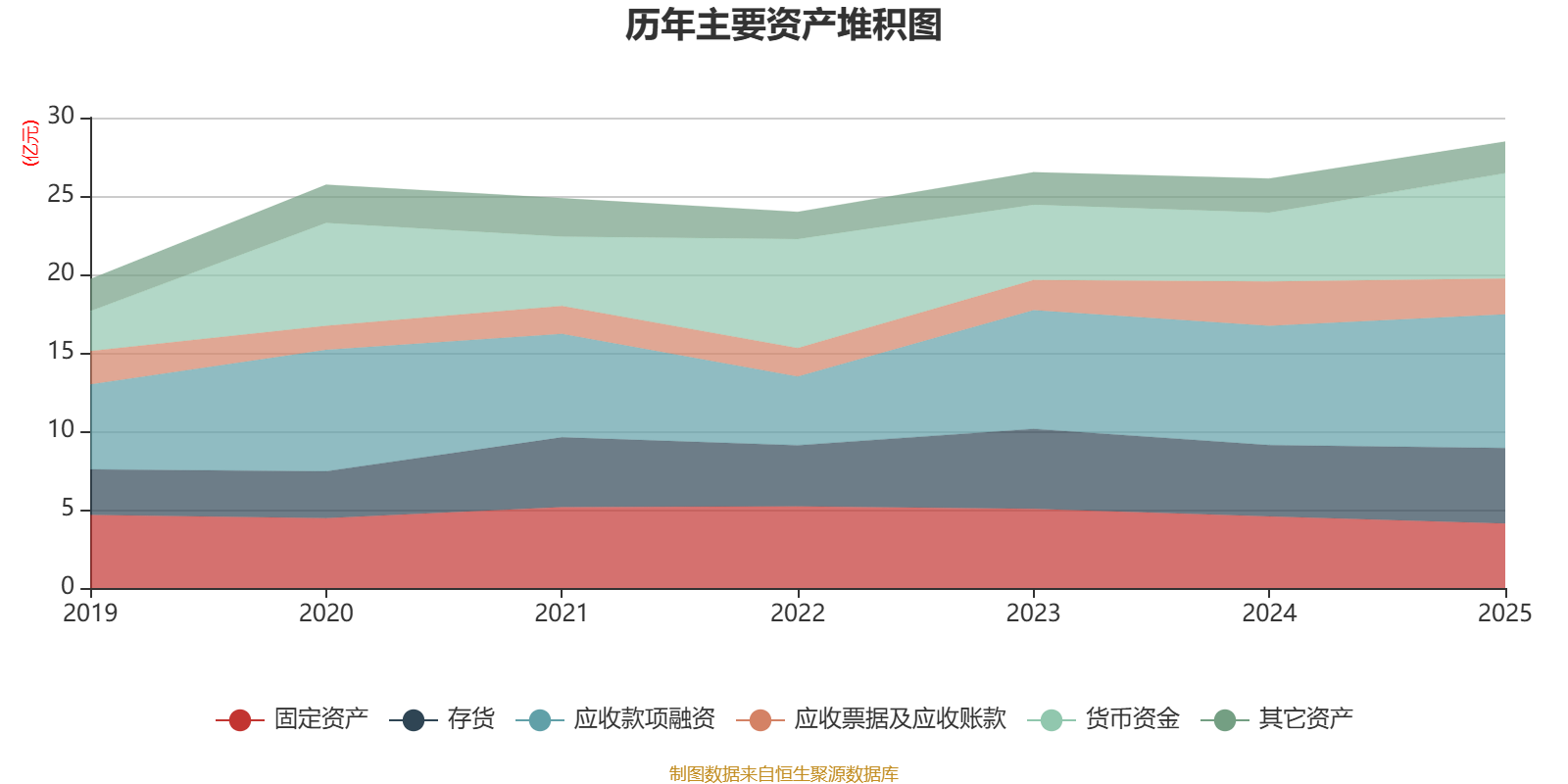 资产重大变化方面,截至2025年末,公司货币资金较上年末增加53.22%,占公司总资产比重上升6.8个百分点;固定资产较上年末减少10.04%,占公司总资产比重下降3.06个百分点;应收票据及应收账款较上年末减少19.28%,占公司总资产比重下降2.81个百分点;应收款项融资较上年末增加12.06%,占公司总资产比重上升0.81个百分点。
