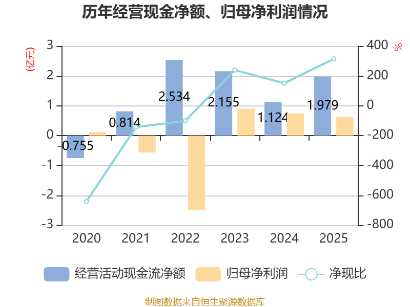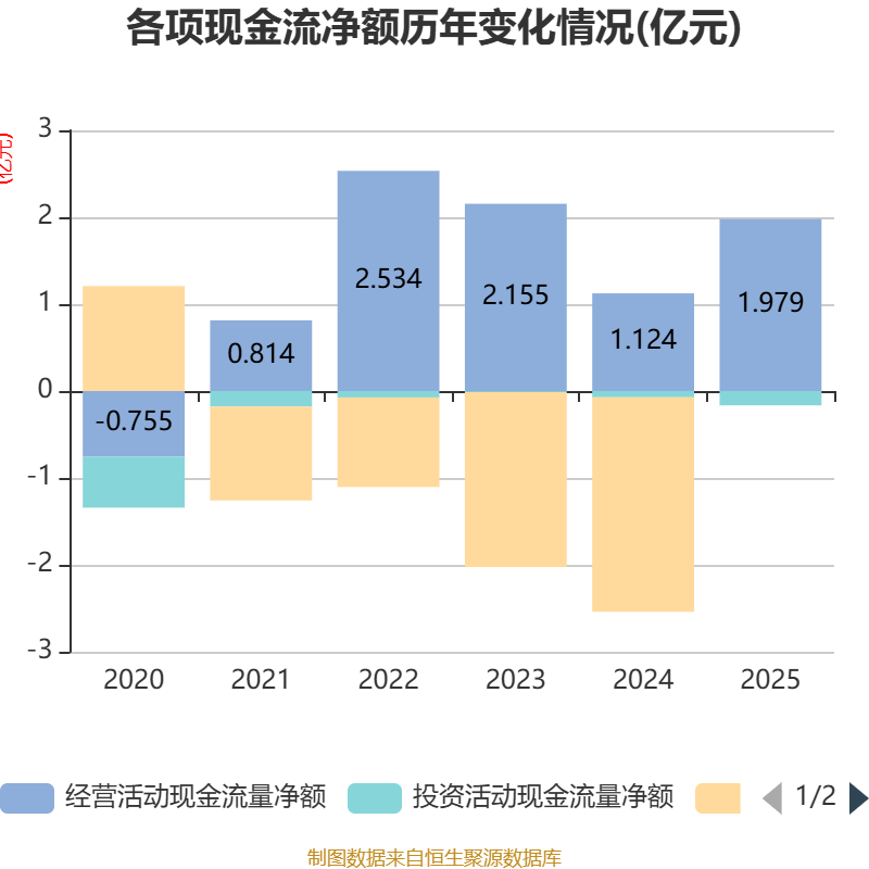 截至2025年,公司经营活动现金流净额为1.98亿元,同比增长76.07%;筹资活动现金流净额370.11元,同比增加2.47亿元;投资活动现金流净额-1654.98万元,上年同期为-717.23万元。