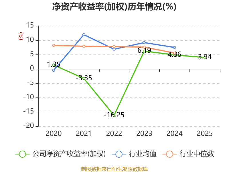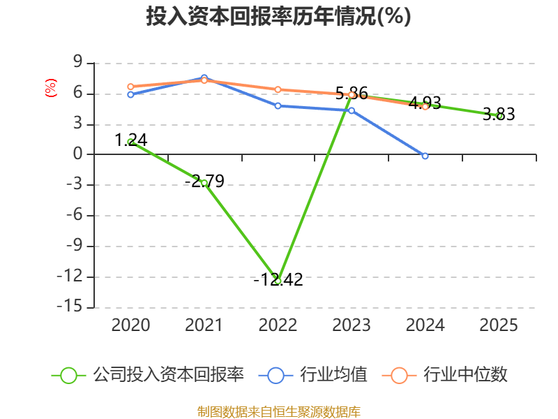 数据显示,2025年公司加权平均净资产收益率为3.94%,较上年同期下降0.92个百分点。公司2025年投入资本回报率为3.83%,较上年同期下降1.1个百分点。