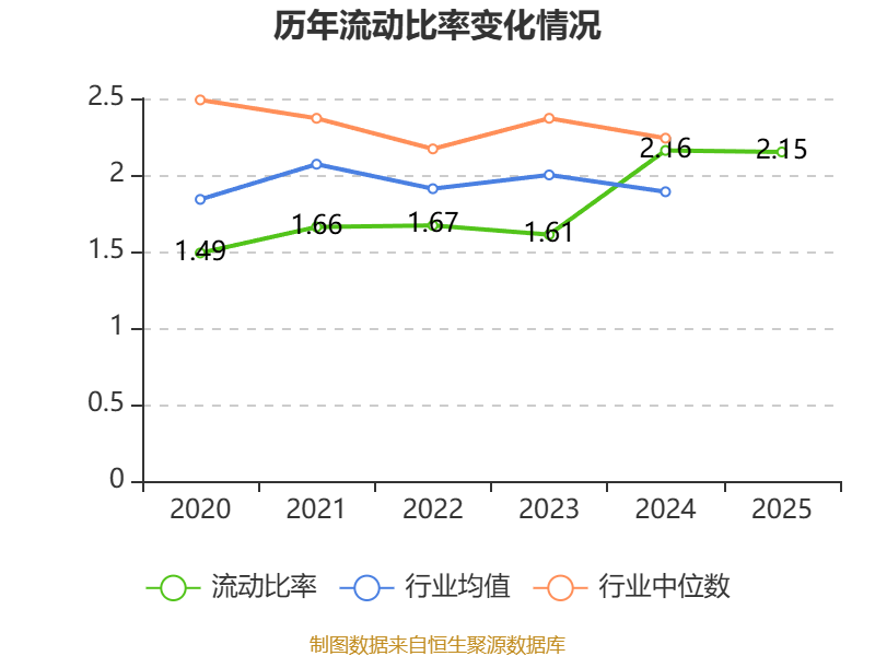 2025年,公司流动比率为2.15,速动比率为1.13。