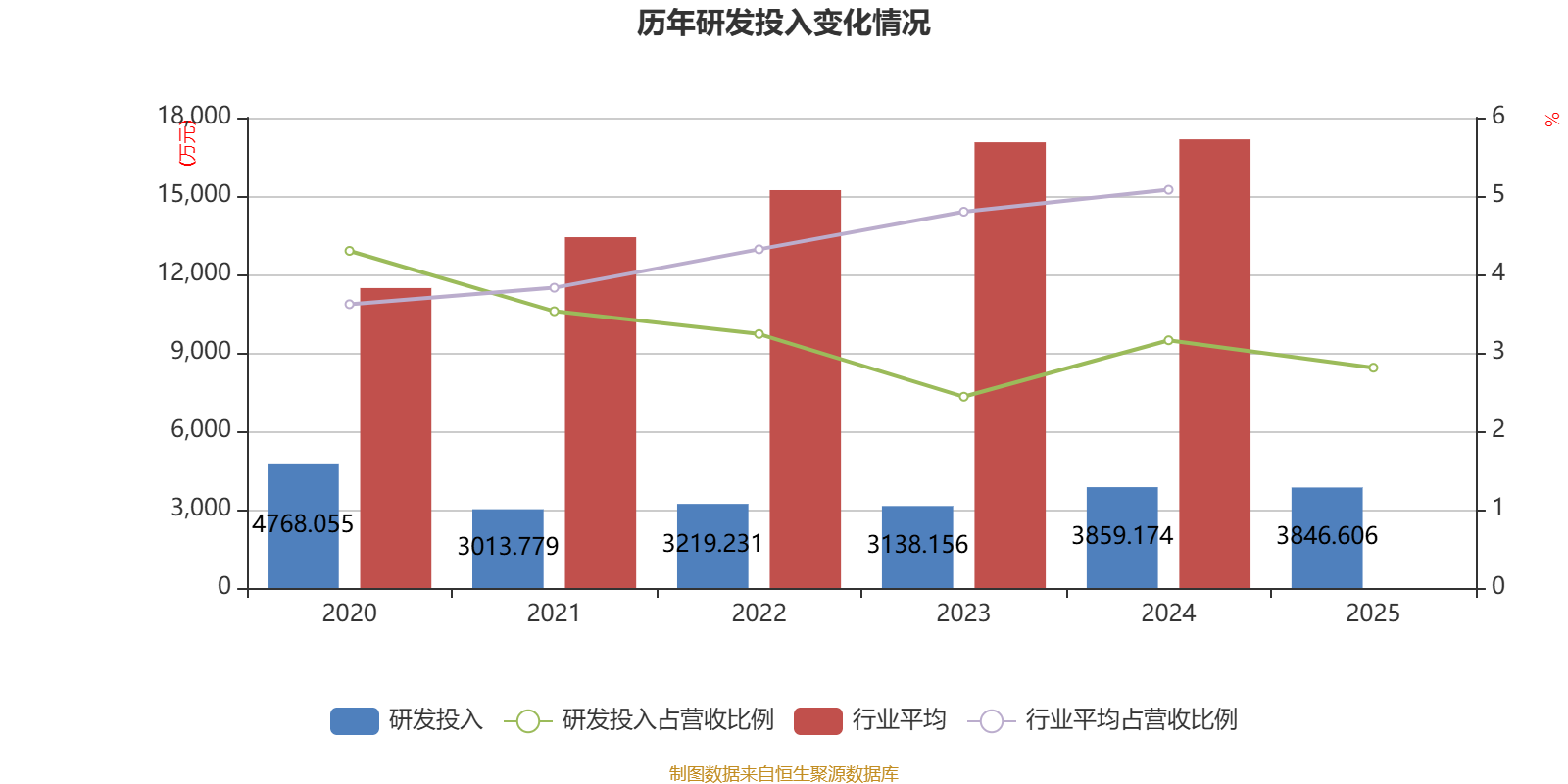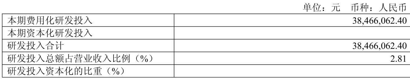 2025年全年,公司研发投入金额为3846.61万元,同比下降0.33%;研发投入占营业收入比例为2.81%,相比上年同期下降0.35个百分点。此外,公司全年研发投入资本化率为0%。