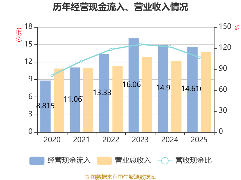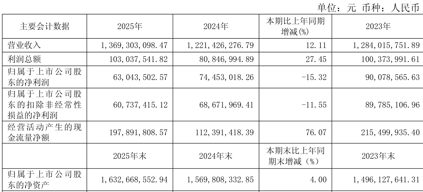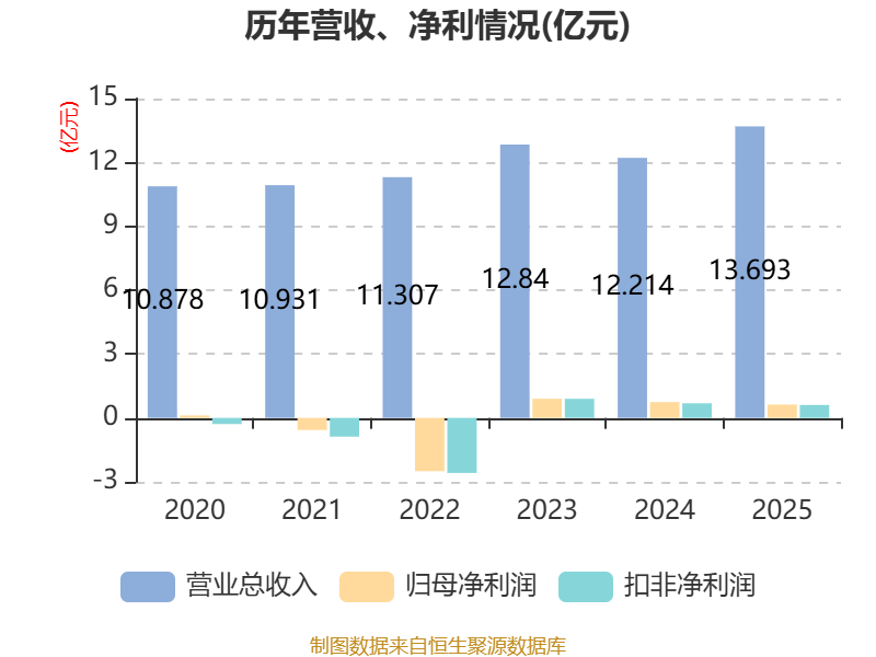中证智能财讯广誉远(600771)4月23日披露2025年年度报告。2025年,公司实现营业总收入13.69亿元,同比增长12.11%;归母净利润6304.35万元,同比下降15.32%;扣非净利润6073.74万元,同比下降11.55%;经营活动产生的现金流量净额为1.98亿元,同比增长76.07%;报告期内,广誉远基本每股收益为0.13元,加权平均净资产收益率为3.94%。
