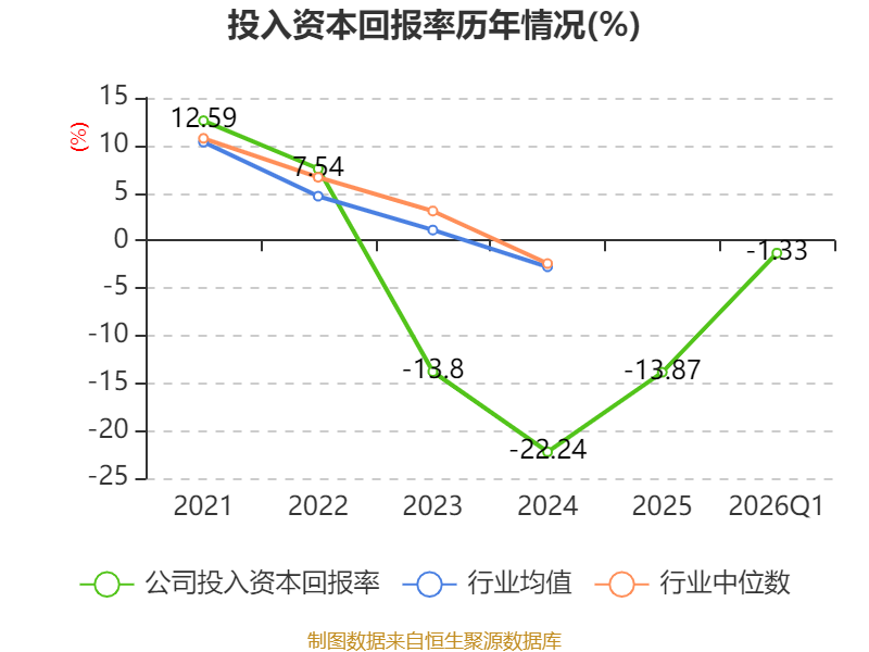 盈利能力方面, 2026年一季度公司加权平均净资产收益率为-1.12%,同比上升1.21个百分点。公司2026年第一季度投入资本回报率为-1.33%,较上年同期上升1.44个百分点。