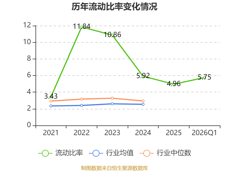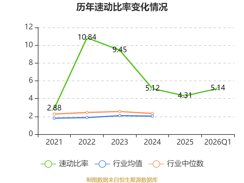 2026年第一季度,公司流动比率为5.75,速动比率为5.14。