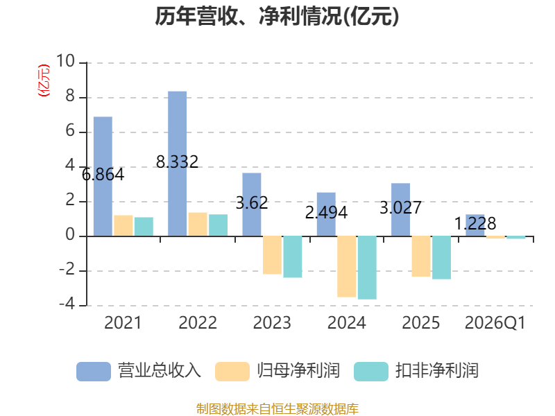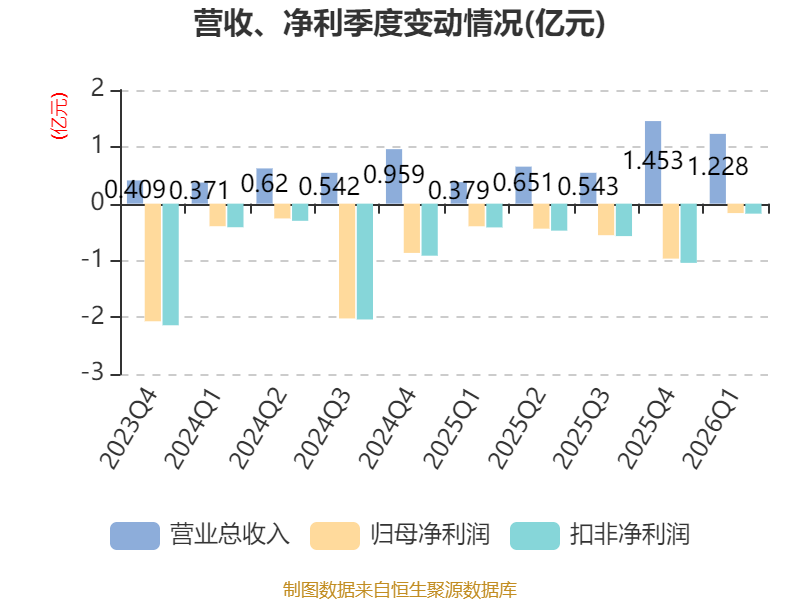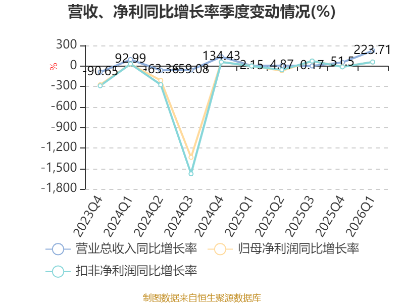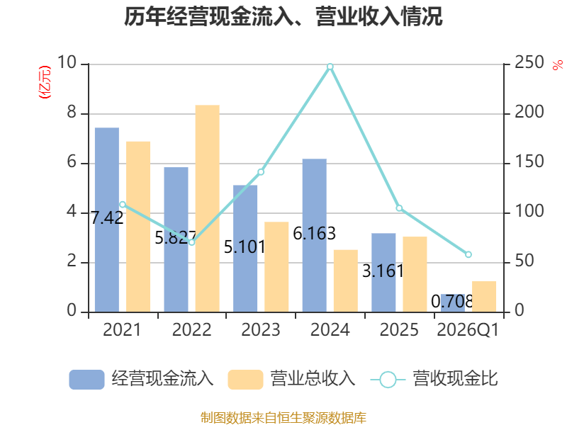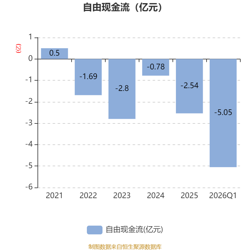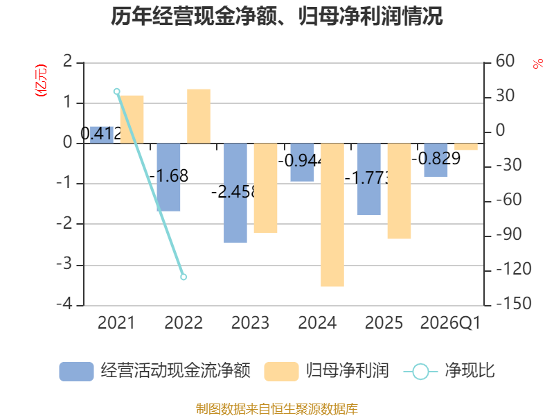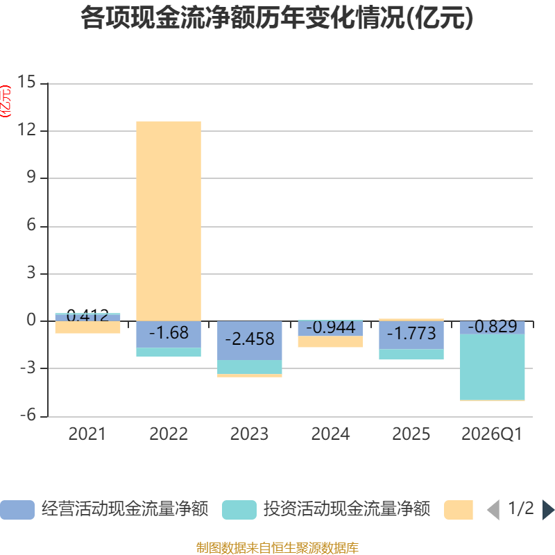 截至2026年一季度末,公司经营活动现金流净额为-8291.92万元,同比增加1837.15万元;筹资活动现金流净额-587.4万元,同比减少2633.46万元;投资活动现金流净额-4.15亿元,上年同期为-6.92亿元。