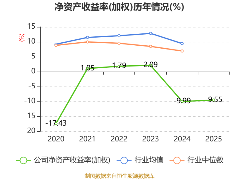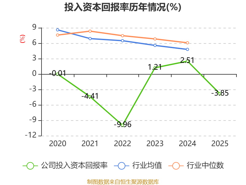 数据显示,2025年公司加权平均净资产收益率为-9.55%,较上年同期上升0.44个百分点。公司2025年投入资本回报率为-3.85%,较上年同期下降6.36个百分点。