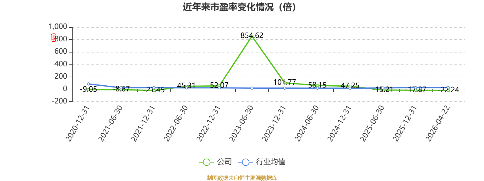 以4月22日收盘价计算,国新能源目前市盈率(TTM)约为-22.24倍,市净率(LF)约1.64倍,市销率(TTM)约0.41倍。