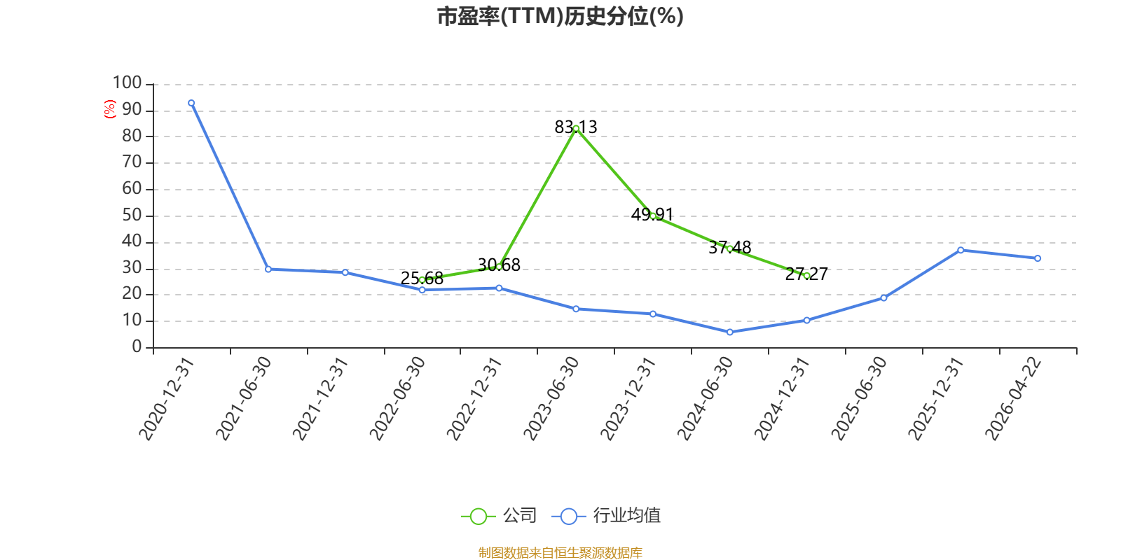 市盈率、市净率为负时,不显示当期分位数,会导致折线图中断。