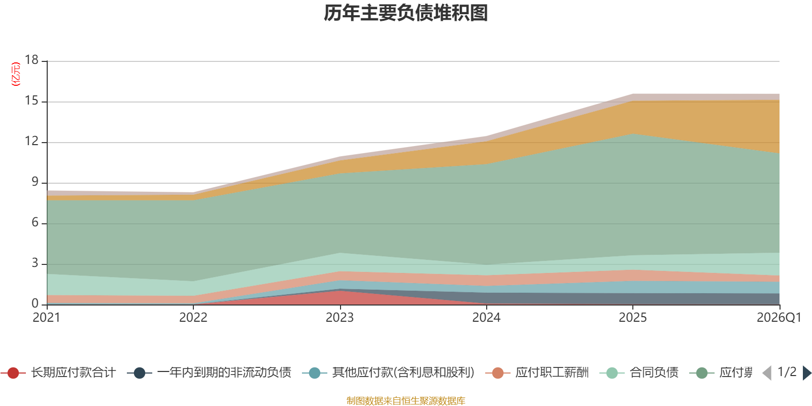 负债重大变化方面,截至2026年一季度末,公司应付票据及应付账款较上年末减少18.35%,占公司总资产比重下降5.15个百分点;短期借款较上年末增加62.66%,占公司总资产比重上升4.93个百分点;合同负债较上年末增加58.03%,占公司总资产比重上升2个百分点;应付职工薪酬较上年末减少43.48%,占公司总资产比重下降1.14个百分点。