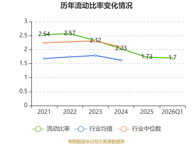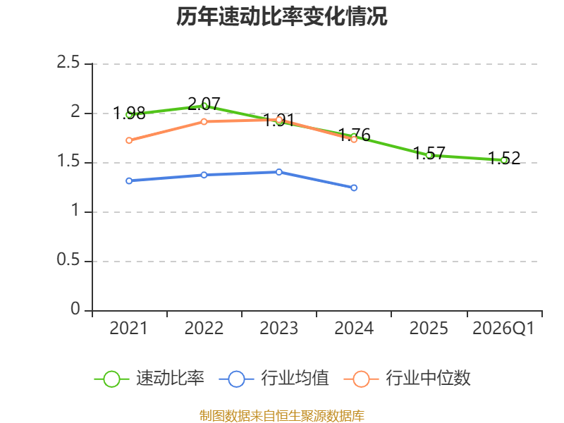 2026年第一季度,公司流动比率为1.7,速动比率为1.52。