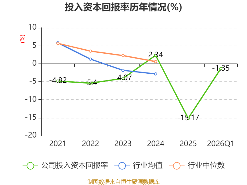 盈利能力方面, 2026年一季度公司加权平均净资产收益率为-1.99%,同比下降1.08个百分点。公司2026年第一季度投入资本回报率为-1.35%,较上年同期下降0.65个百分点。