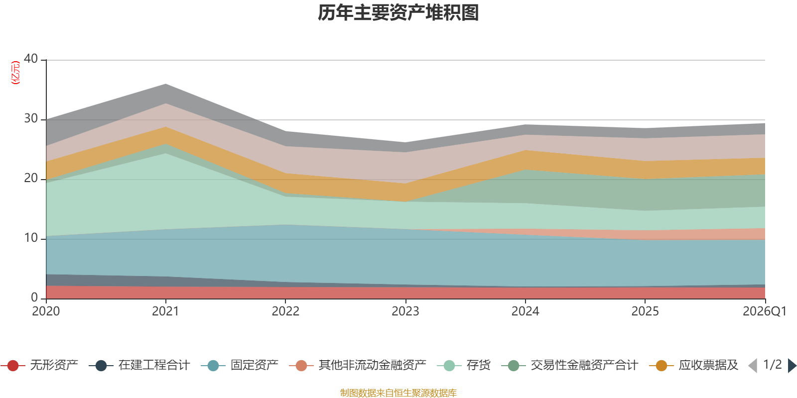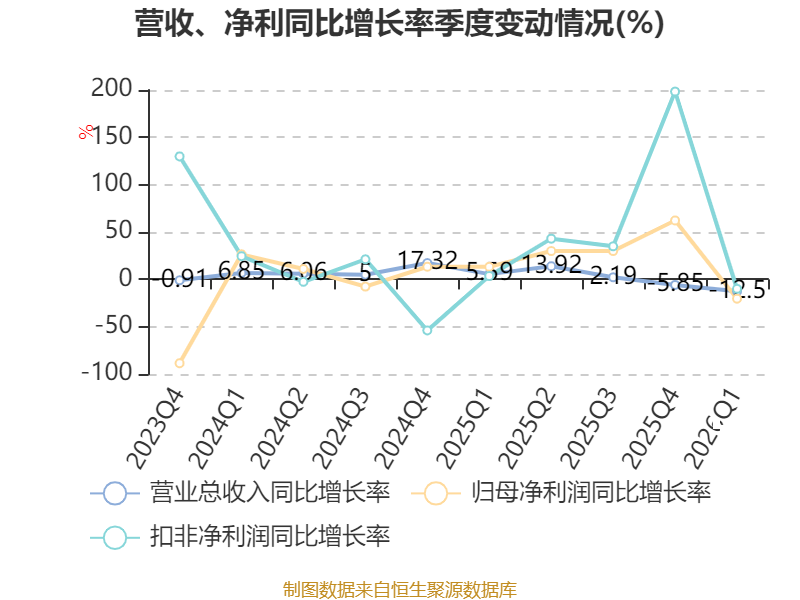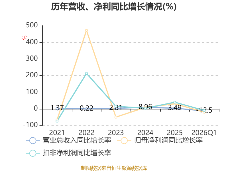资产重大变化方面,截至2026年一季度末,公司固定资产较上年末减少3.09%,占公司总资产比重下降1.58个百分点;应收票据及应收账款较上年末减少9.09%,占公司总资产比重下降1.24个百分点;在建工程合计较上年末增加130.71%,占公司总资产比重上升0.97个百分点;存货较上年末增加10.9%,占公司总资产比重上升0.89个百分点。