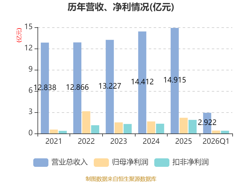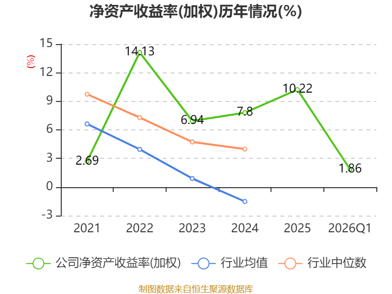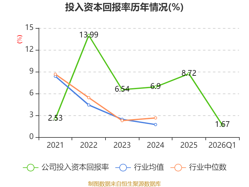 盈利能力方面, 2026年一季度公司加权平均净资产收益率为1.86%,同比下降0.53个百分点。公司2026年第一季度投入资本回报率为1.67%,较上年同期下降0.26个百分点。