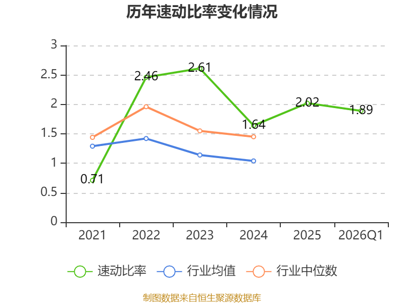 2026年第一季度,公司流动比率为2.41,速动比率为1.89。