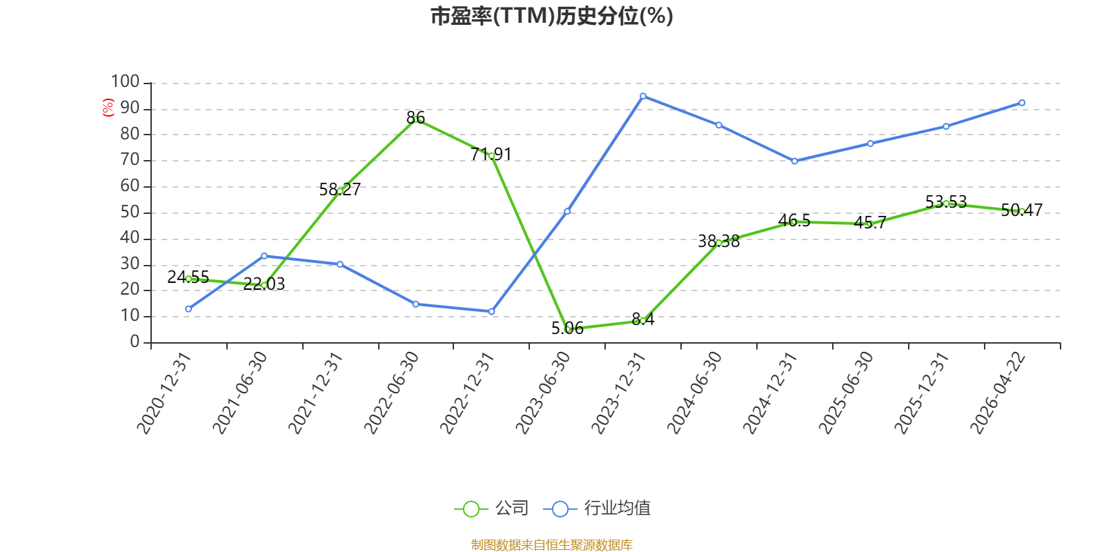 市盈率、市净率为负时,不显示当期分位数,会导致折线图中断。