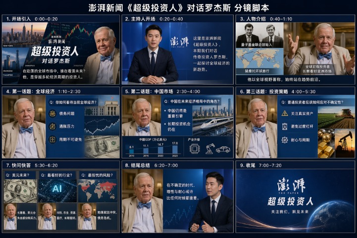 在记者要求其生成一张澎湃新闻《超级投资人》节目对话罗杰斯的分镜图时,Images 2.0不仅精准捕捉了罗杰斯的外貌特征,而且在生成的分镜中保持了极高的一致性。无论是人物神态、衣着细节,还是场景的光影逻辑,均未出现以往AI生图中常见的“换脸”或“变形”现象。