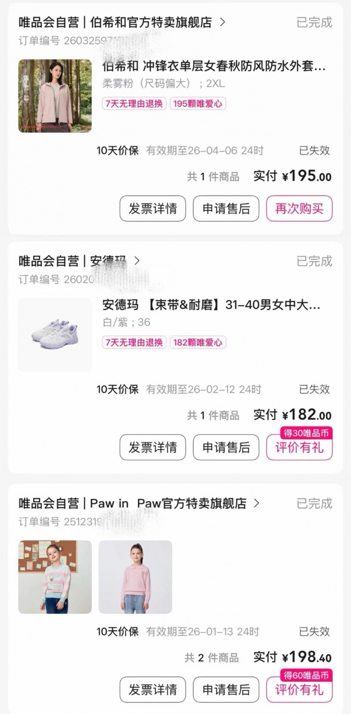 于是在这些SVIP的订单记录里,有195元的伯希和冲锋衣,单价不到100元的小熊儿童针织衫,3折的安德玛运动鞋……