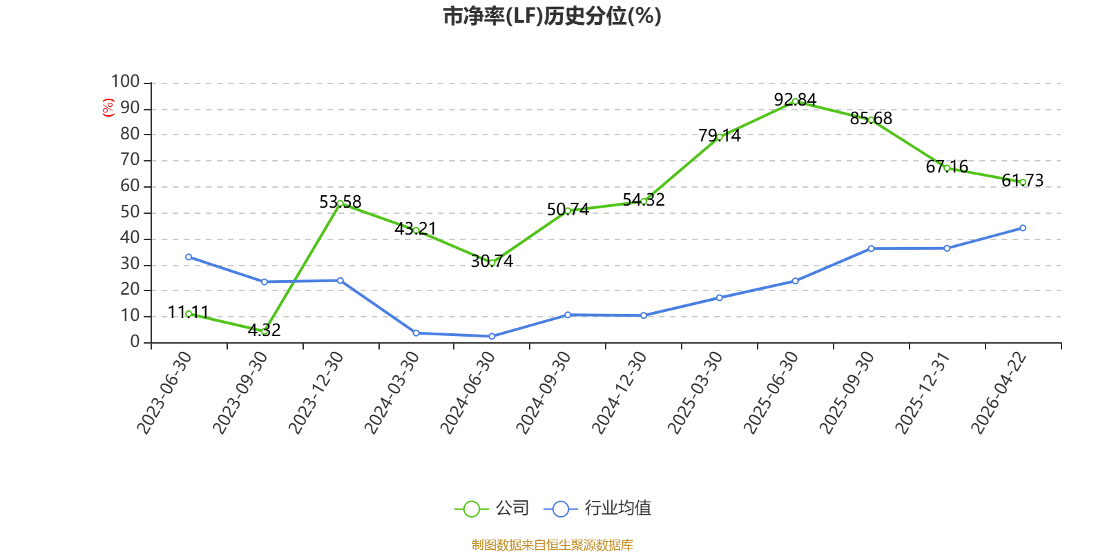 市盈率、市净率为负时,不显示当期分位数,会导致折线图中断。