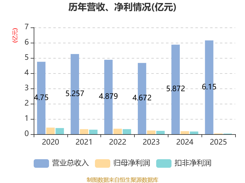 中证智能财讯汉维科技(920957)4月22日披露2025年年度报告。2025年,公司实现营业总收入6.15亿元,同比增长4.74%;归母净利润490.01万元,同比下降75.41%;扣非净利润404.5万元,同比下降76.99%;经营活动产生的现金流量净额为2104.75万元,上年同期为-5519.61万元;报告期内,汉维科技基本每股收益为0.05元,加权平均净资产收益率为1.24%。公司2025年度分配预案为:拟向全体股东每10股派现1元(含税)。