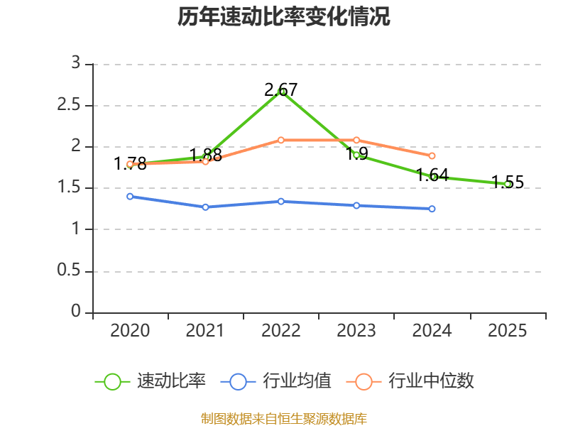 2025年,公司流动比率为1.83,速动比率为1.55。