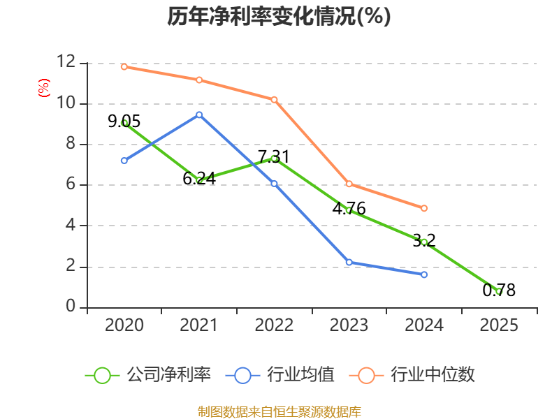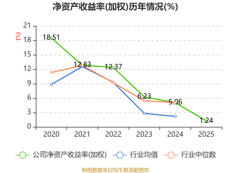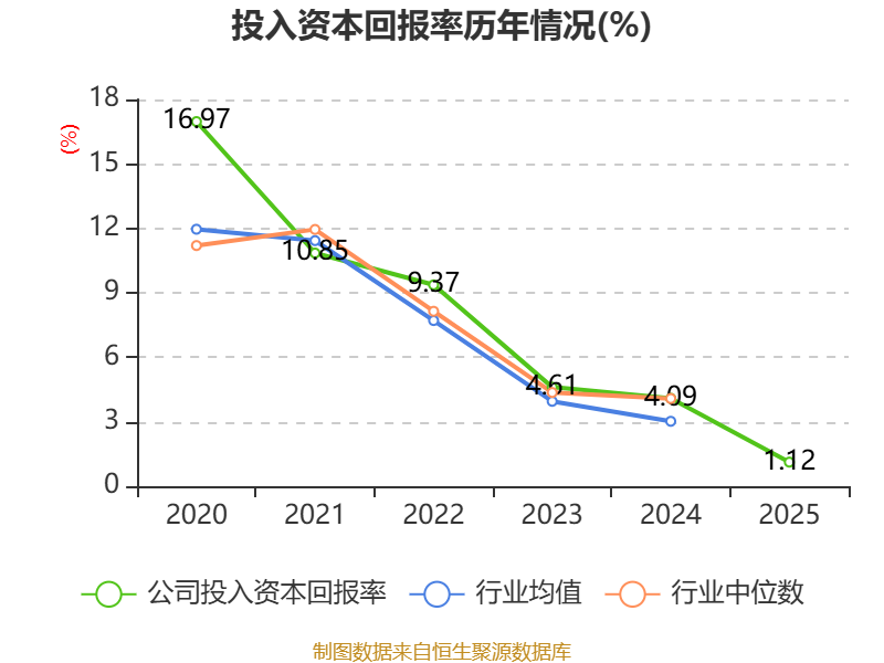 数据显示,2025年公司加权平均净资产收益率为1.24%,较上年同期下降3.82个百分点。公司2025年投入资本回报率为1.12%,较上年同期下降2.97个百分点。