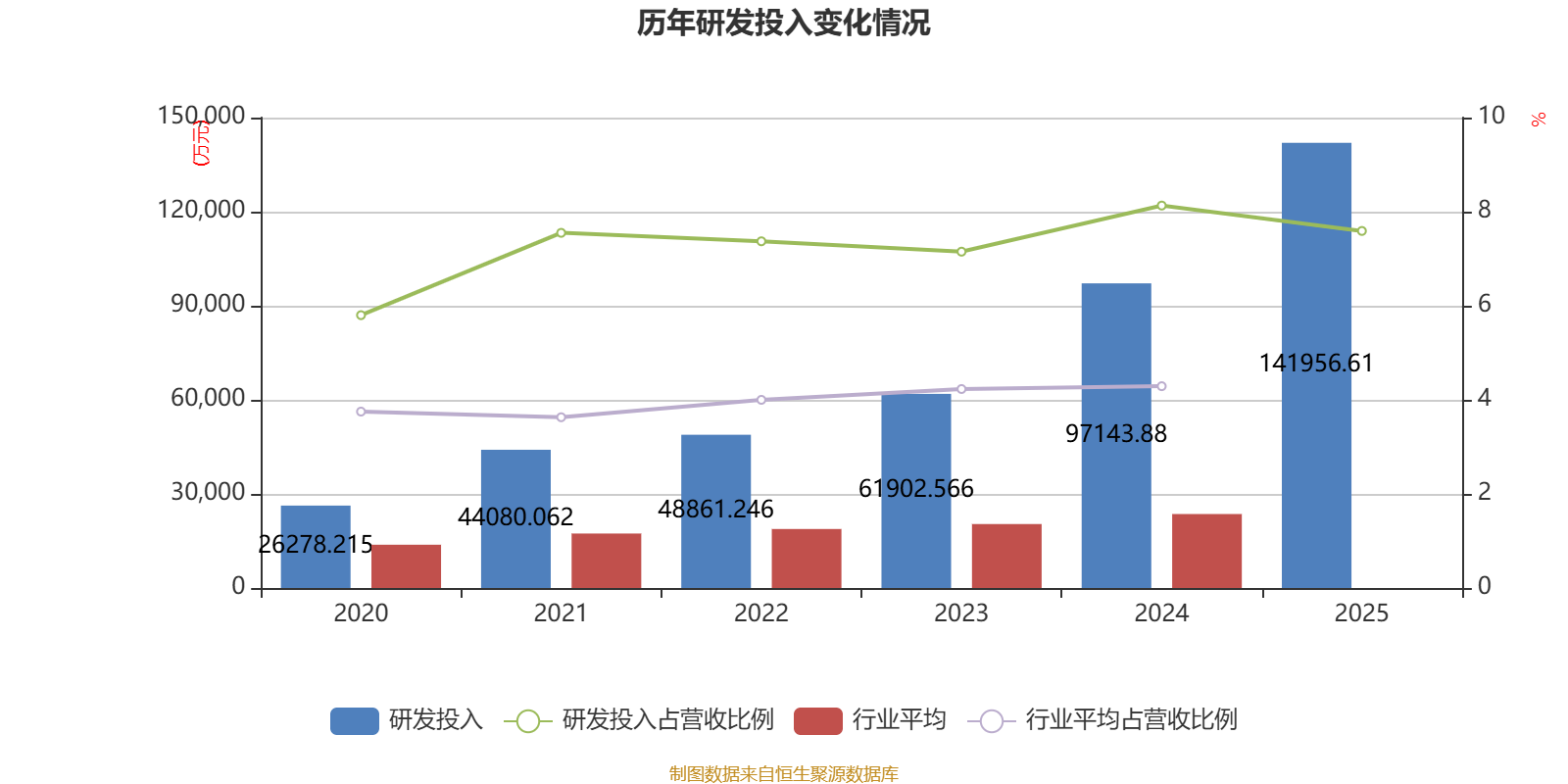 2025年全年,公司研发投入金额为14.2亿元,同比增长46.13%;研发投入占营业收入比例为7.59%,相比上年同期下降0.54个百分点。