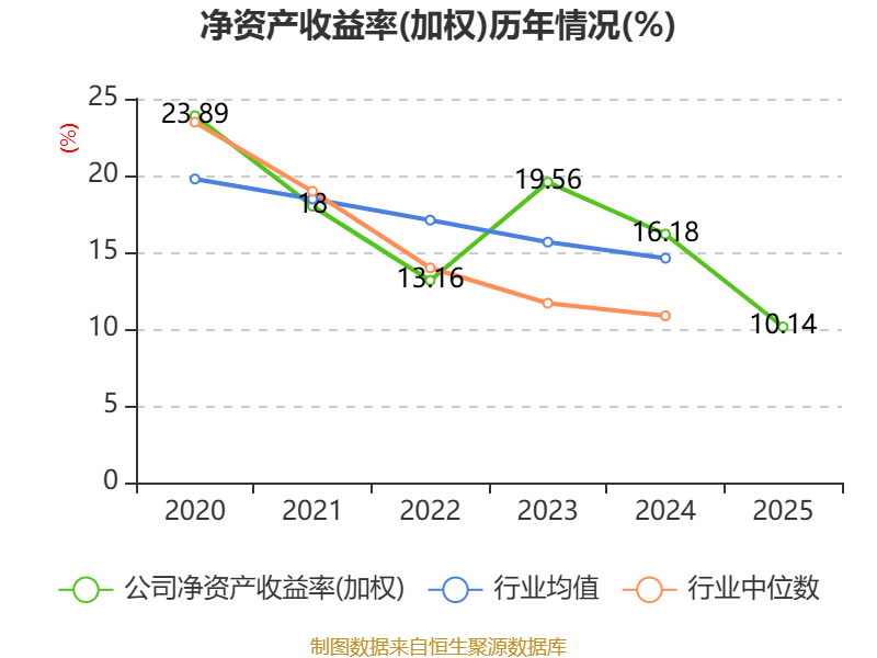 数据显示,2025年公司加权平均净资产收益率为10.14%,较上年同期下降6.04个百分点。公司2025年投入资本回报率为8.69%,较上年同期下降6.13个百分点。
