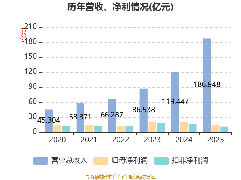 中证智能财讯石头科技(688169)4月23日披露2025年年度报告。2025年,公司实现营业总收入186.95亿元,同比增长56.51%;归母净利润13.63亿元,同比下降31.03%;扣非净利润10.92亿元,同比下降32.60%;经营活动产生的现金流量净额为7.74亿元,同比下降55.38%;报告期内,石头科技基本每股收益为5.29元,加权平均净资产收益率为10.14%。公司2025年度分配预案为:拟向全体股东每10股派现5.267元(含税)。