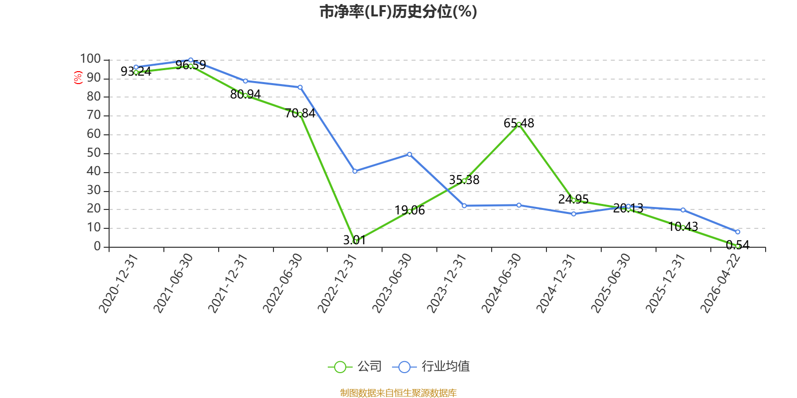 市盈率、市净率为负时,不显示当期分位数,会导致折线图中断。