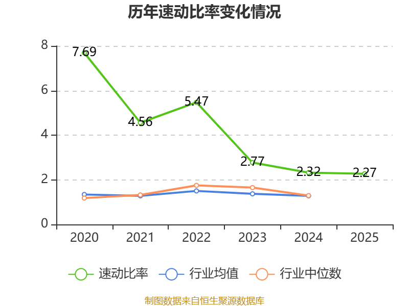 2025年,公司流动比率为2.75,速动比率为2.27。