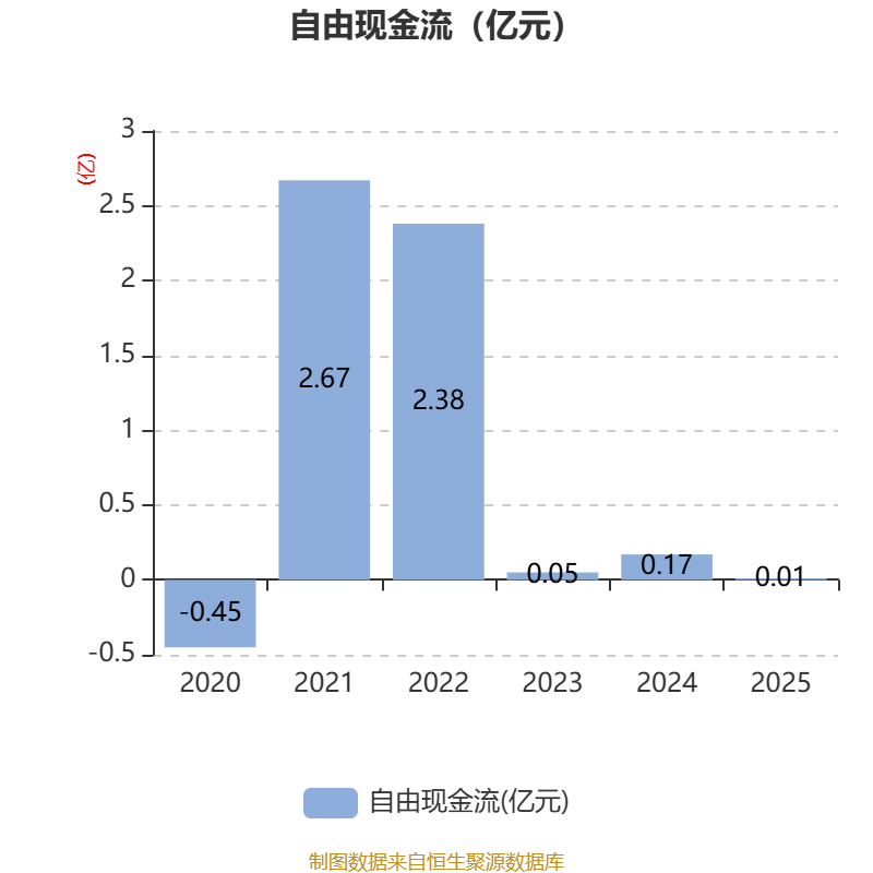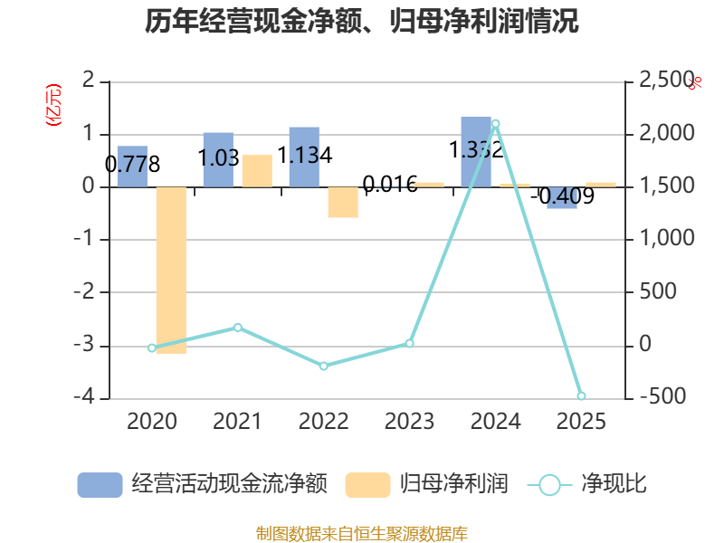 截至2025年,公司经营活动现金流净额为-4085.3万元,同比减少1.74亿元;筹资活动现金流净额2642.01万元,同比增加1.96亿元;投资活动现金流净额972.28万元,上年同期为1623.83万元。