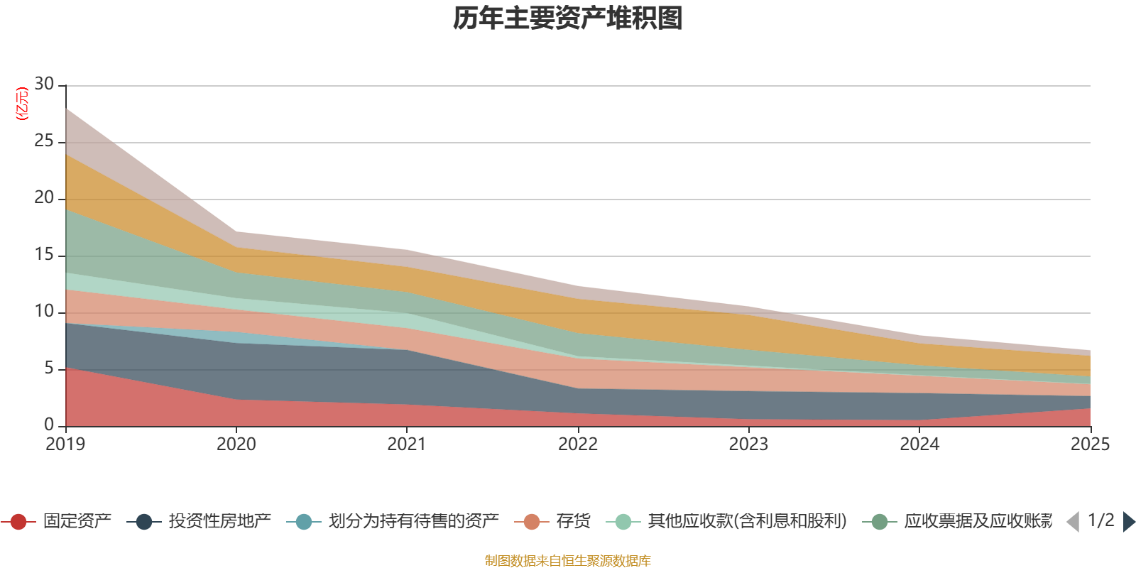 资产重大变化方面,截至2025年末,公司固定资产较上年末增加201.42%,占公司总资产比重上升16.84个百分点;投资性房地产较上年末减少54.54%,占公司总资产比重下降13.56个百分点;存货较上年末减少32.4%,占公司总资产比重下降3.7个百分点;货币资金较上年末减少5.56%,占公司总资产比重上升3.15个百分点。