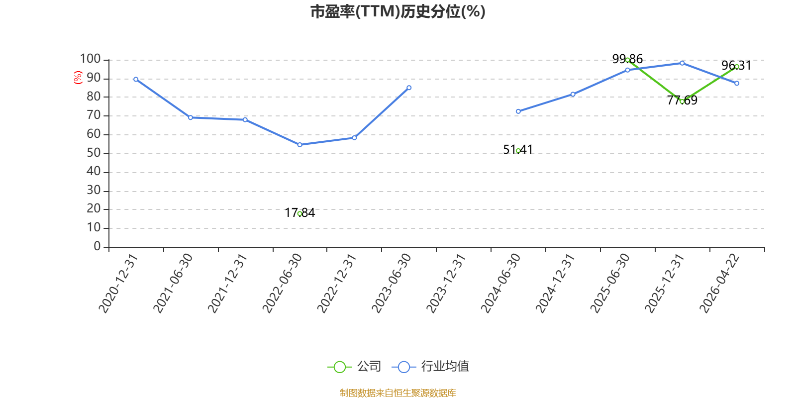 市盈率、市净率为负时,不显示当期分位数,会导致折线图中断。