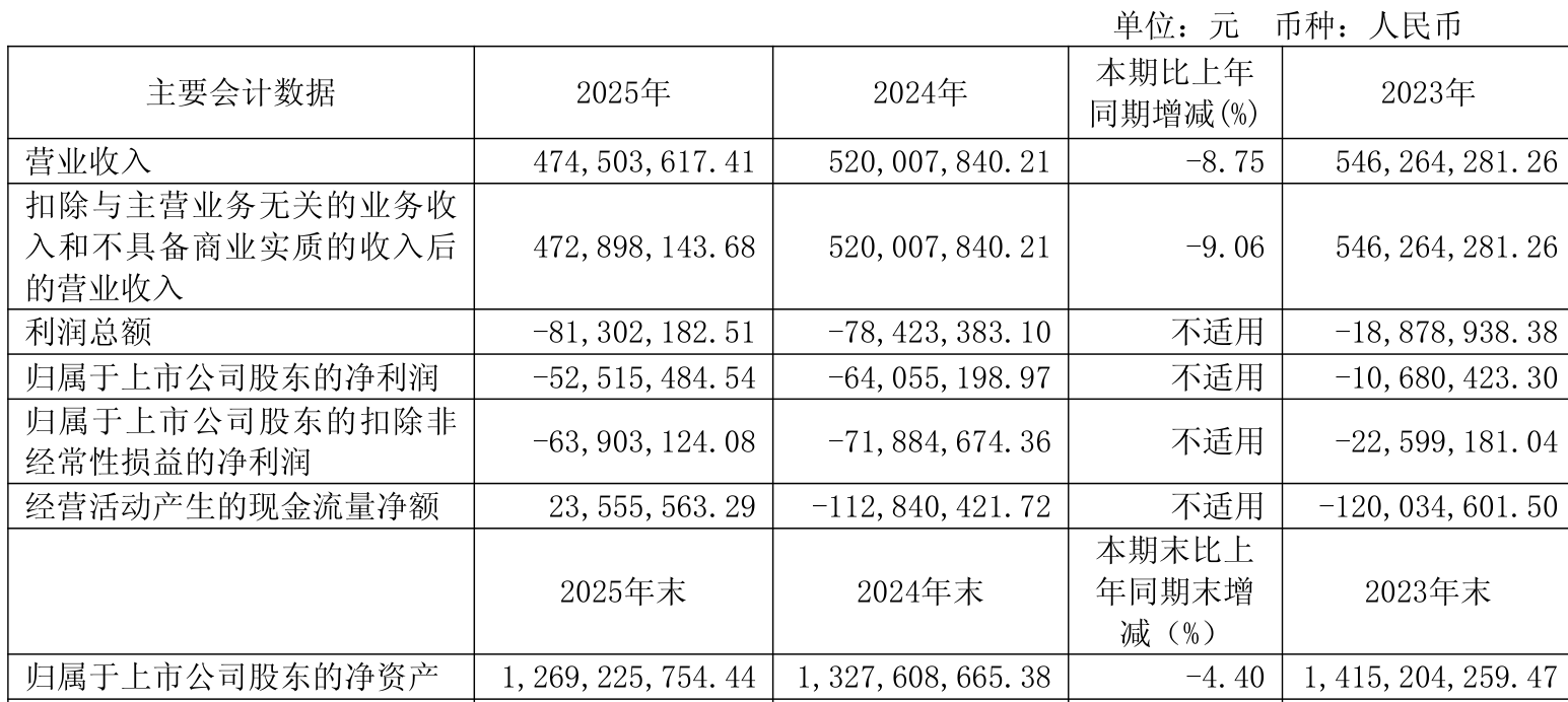 中证智能财讯品高股份(688227)4月23日披露2025年年度报告。2025年,公司实现营业总收入4.75亿元,同比下降8.75%;归母净利润亏损5251.55万元,上年同期亏损6405.52万元;扣非净利润亏损6390.31万元,上年同期亏损7188.47万元;经营活动产生的现金流量净额为2355.56万元,上年同期为-1.13亿元;报告期内,品高股份基本每股收益为-0.46元,加权平均净资产收益率为-4.03%。