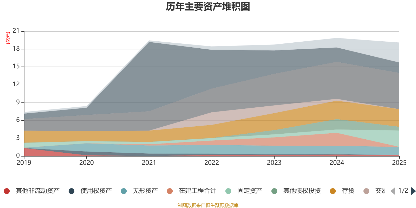 资产重大变化方面,截至2025年末,公司固定资产较上年末增加387.89%,占公司总资产比重上升11.62个百分点;在建工程合计较上年末减少100%,占公司总资产比重下降11.09个百分点;其他债权投资较上年末减少64.27%,占公司总资产比重下降5.5个百分点;货币资金较上年末减少27.07%,占公司总资产比重下降2.92个百分点。