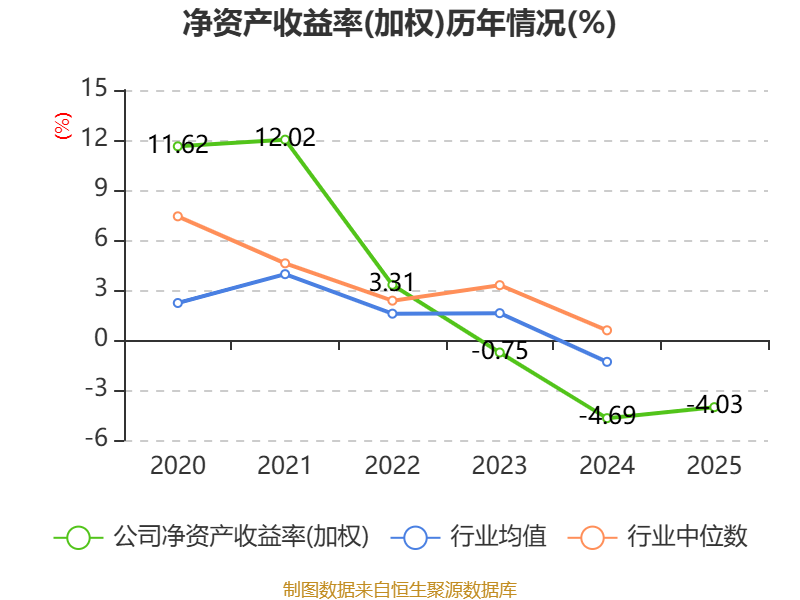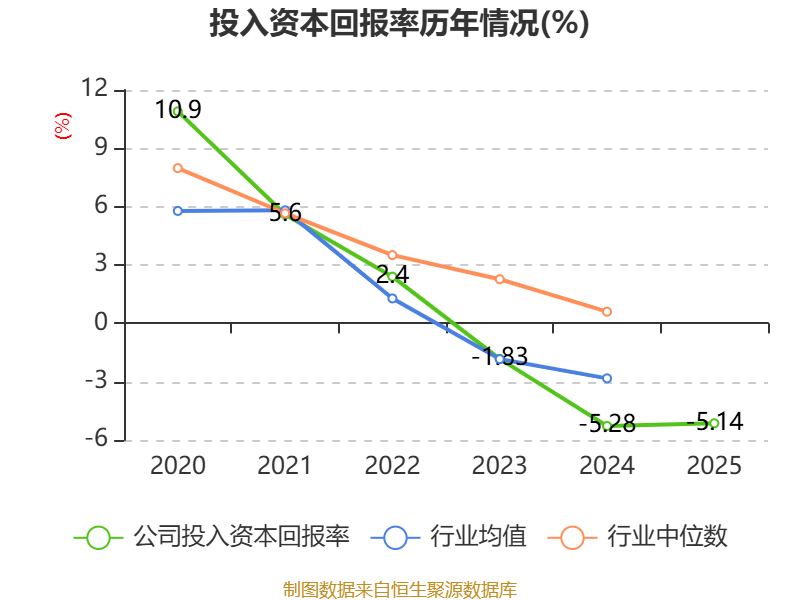 数据显示,2025年公司加权平均净资产收益率为-4.03%,较上年同期上升0.66个百分点。公司2025年投入资本回报率为-5.14%,较上年同期上升0.14个百分点。