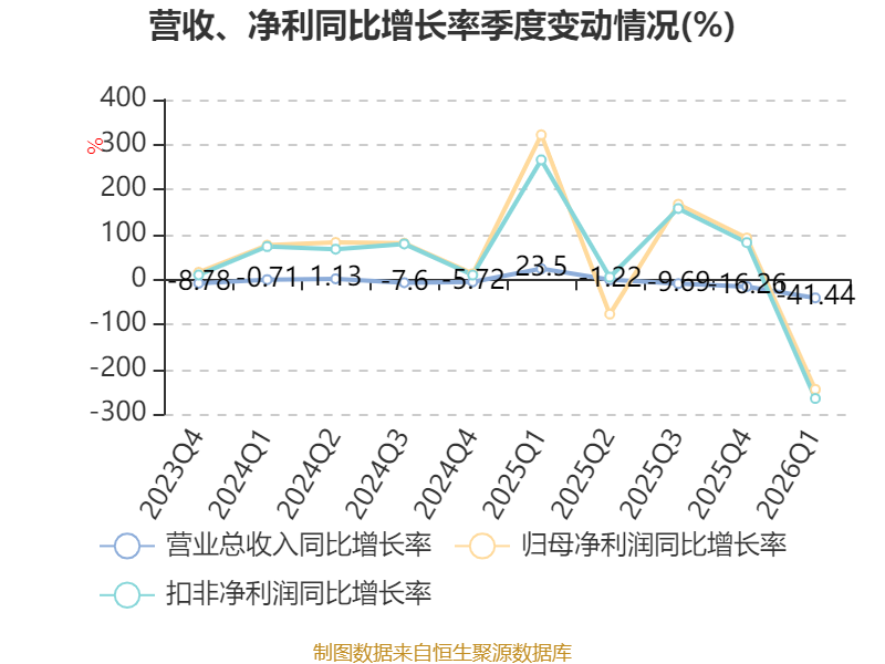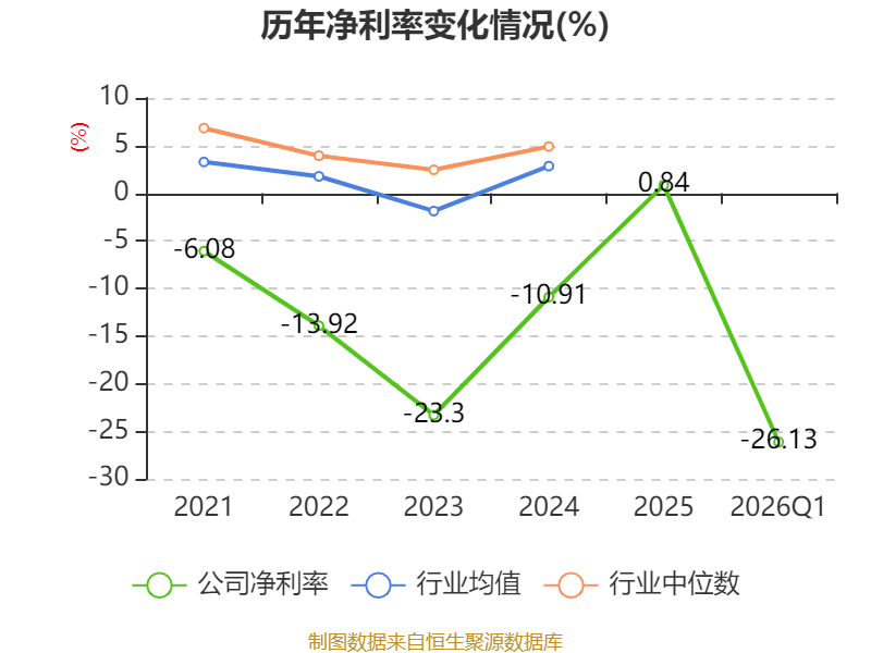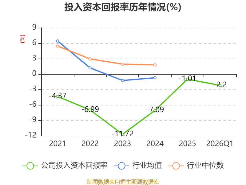 盈利能力方面, 2026年一季度公司加权平均净资产收益率为-1.92%,同比下降3.22个百分点。公司2026年第一季度投入资本回报率为-2.2%,较上年同期下降2.78个百分点。