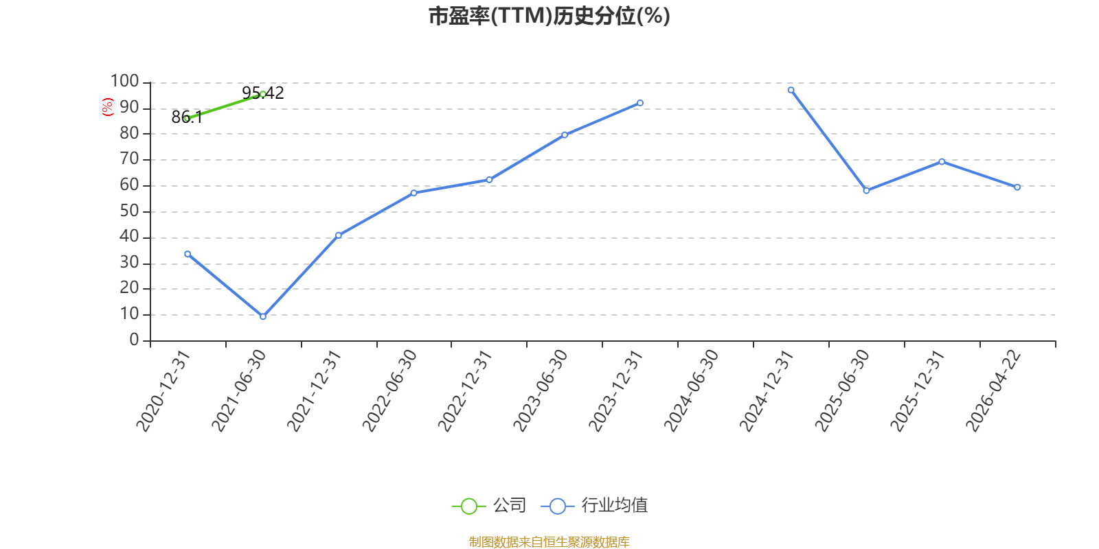 市盈率、市净率为负时,不显示当期分位数,会导致折线图中断。